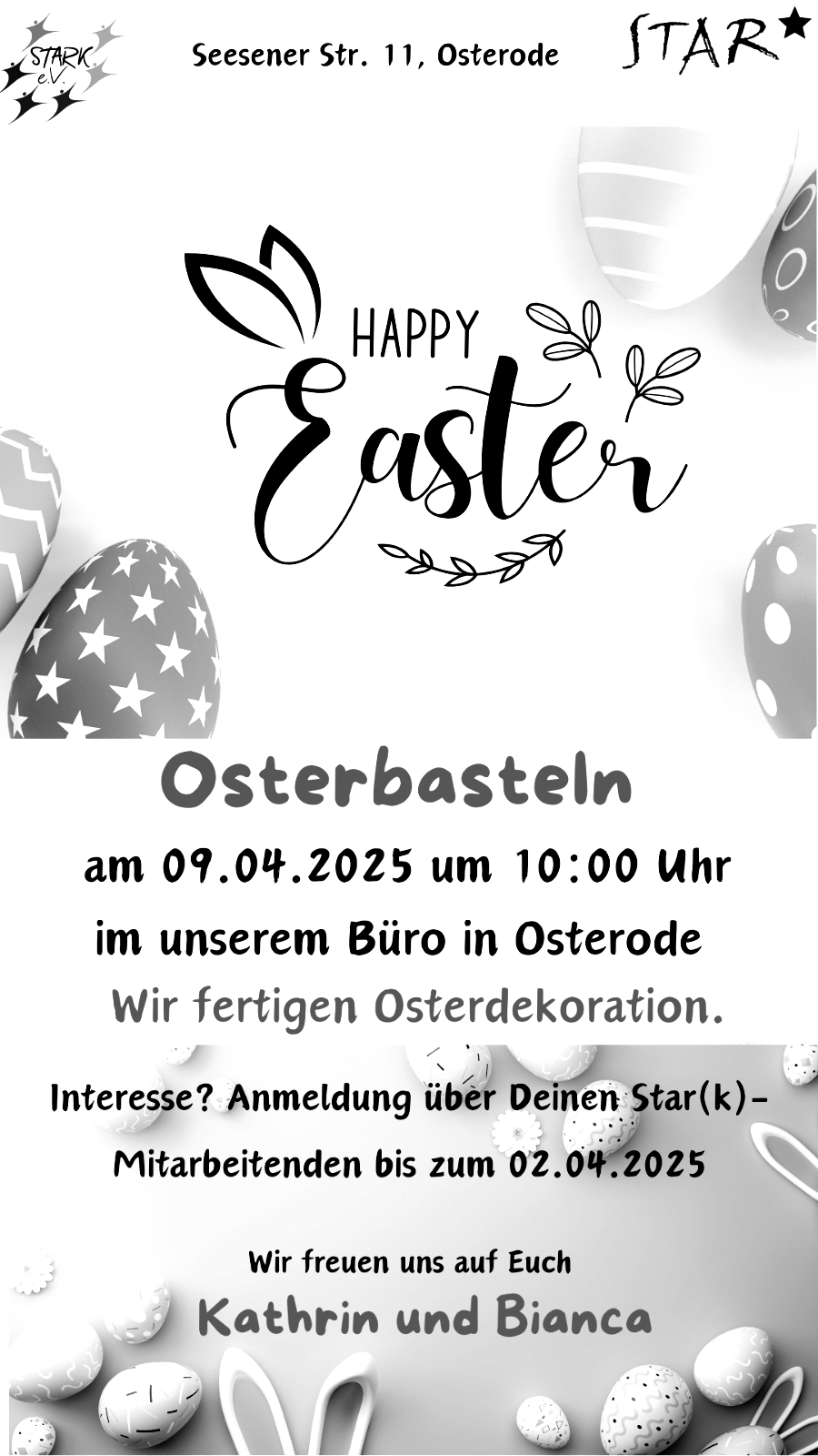 Gemeinsam basteln für Ostern. Anmeldung über deine*n Star-Mitarbeitende*n bis zum 26.03.25