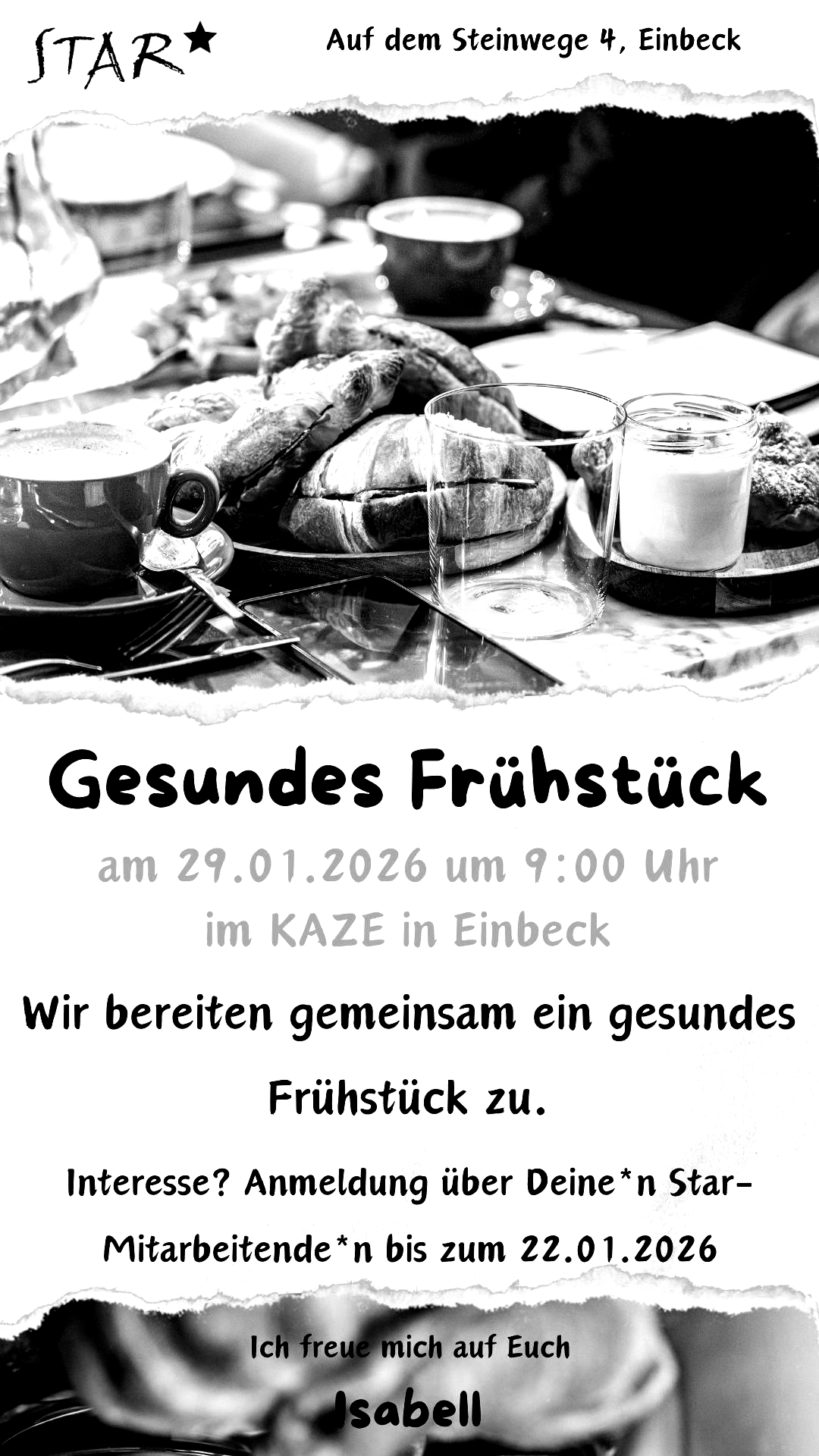 Wir bereiten gemeinsam ein gesundes Frühstück zu. Anmeldung über deine*n Star-Mitarbeitende*n bis zum 22.01.26
