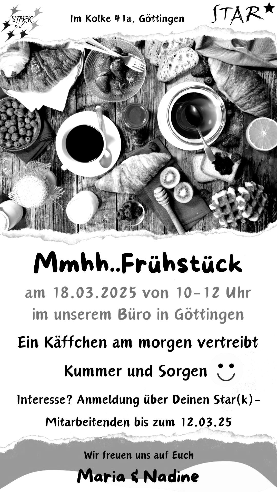 Ein Käffchen am Morgen vertreibt Kummer und Sorgen. Anmeldung über deine*n Star-Mitarbeitende* n bis zum 12.03.25
