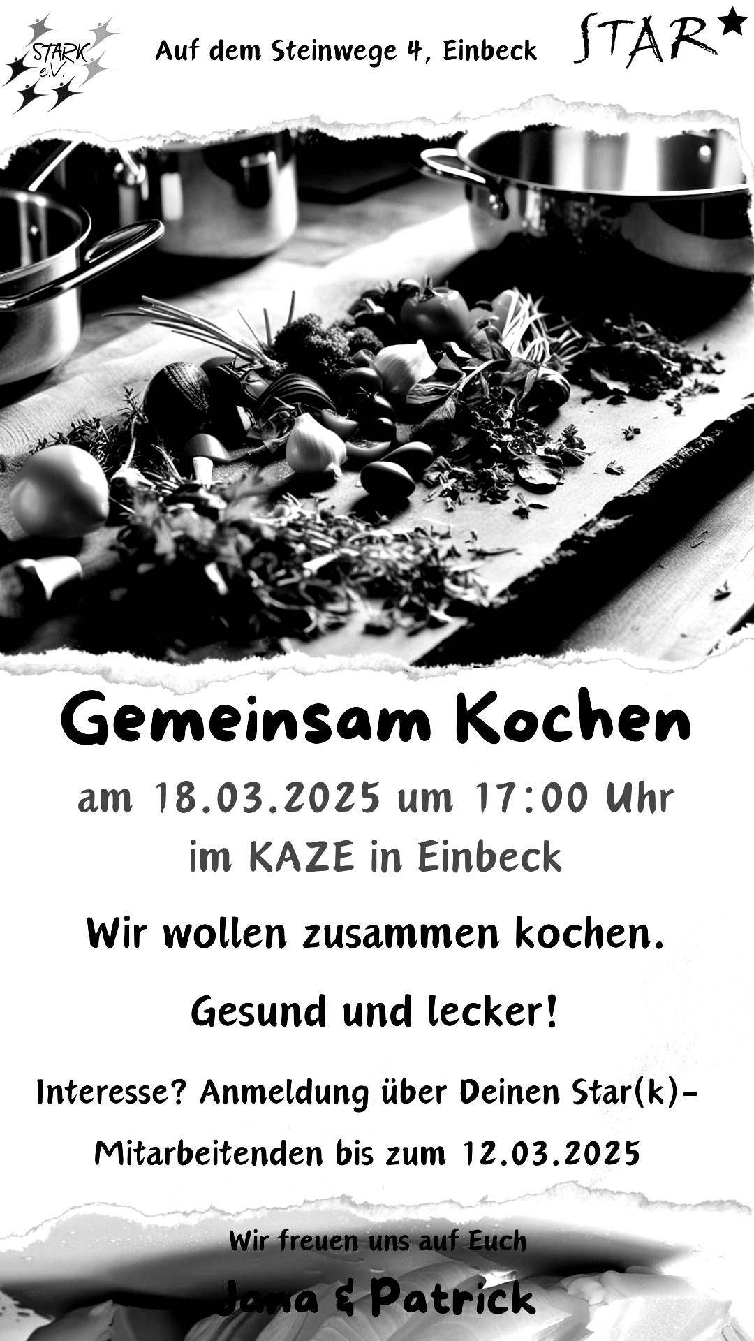 Wir wollen gemeinsam gesund und lecker kochen. Anmeldung über deine*n Star-Mitarbeitende* n bis zum 12.03.25