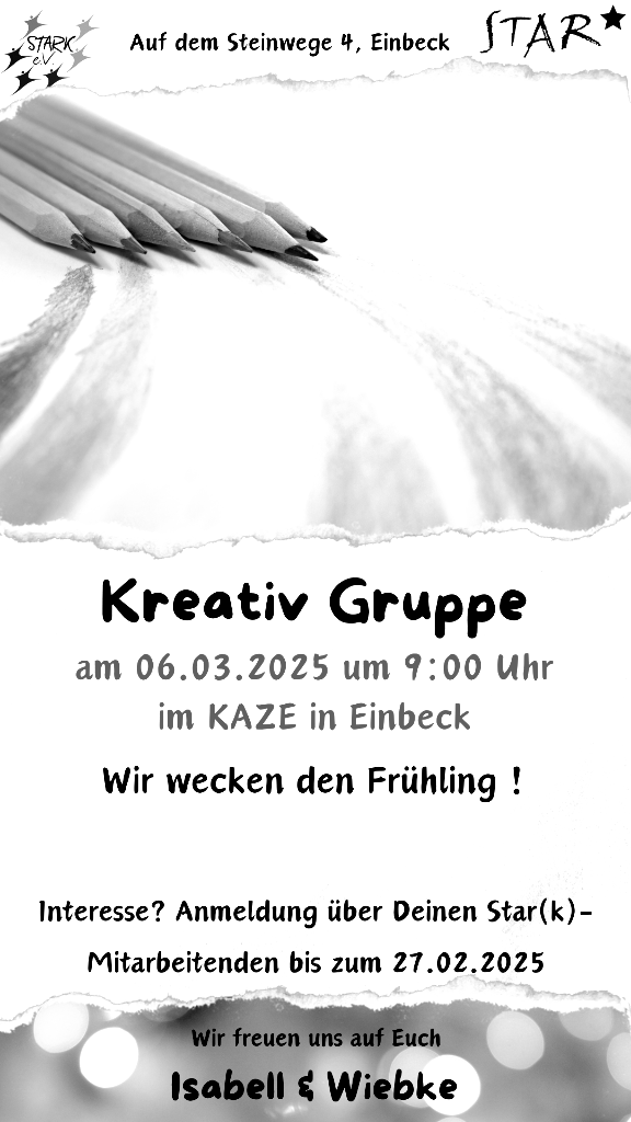 Wir wecken den Frühling mit kreativen Basteleien. Anmeldung über deine*n Star-Mitarbeitende* n bis zum 27.02.25