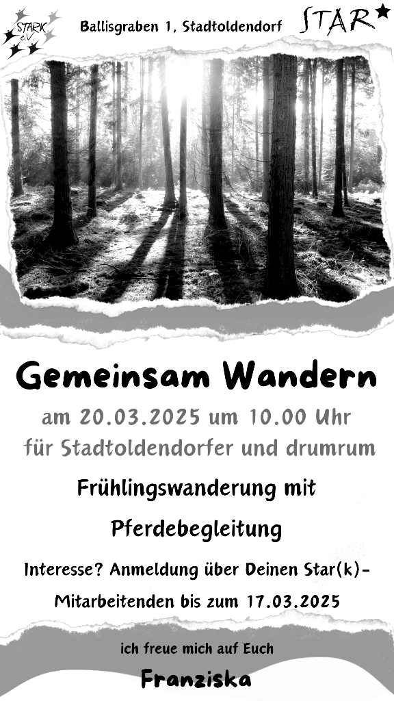 Freizeitgruppe Uslar trifft sich an der Spielhalle. Anmeldung über deine*n Star-Mitarbeitende* n bis zum 21.03.25