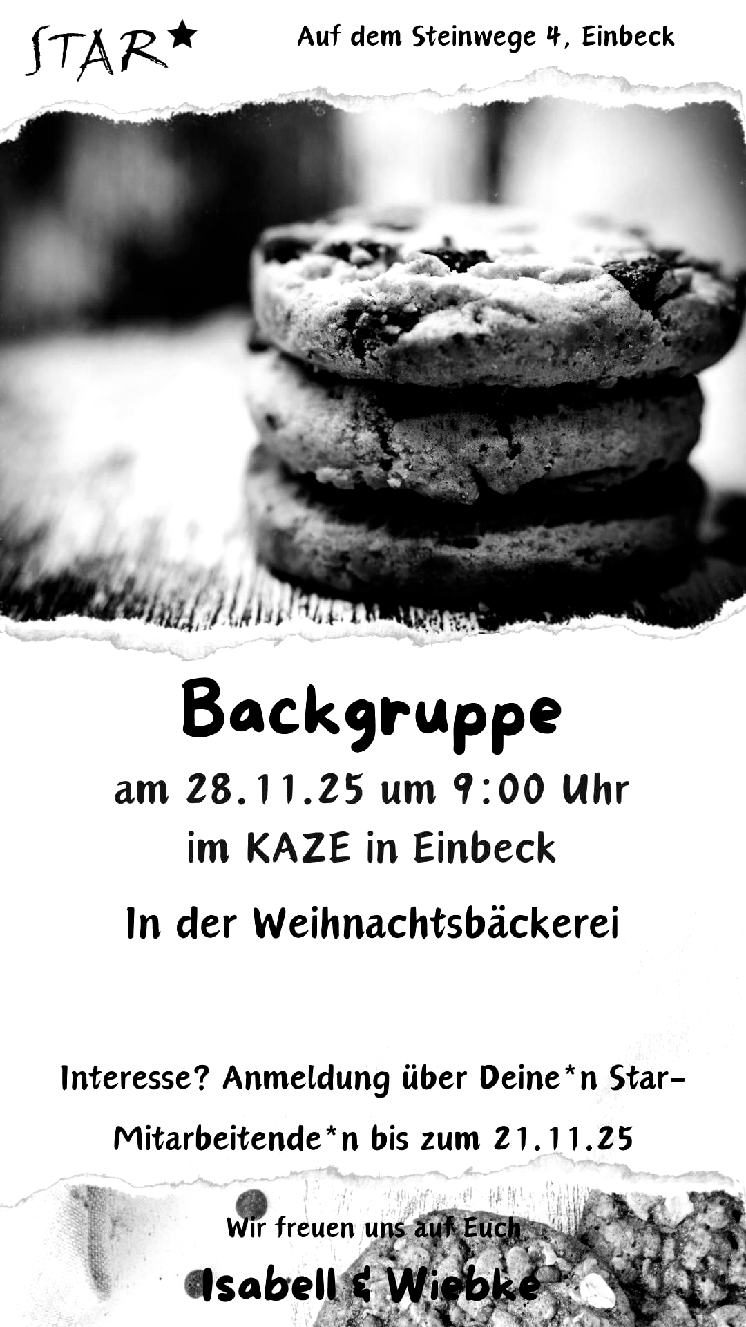 Gemeinsames Keksebacken. Anmeldung über deine*n Star-Mitarbeitende*n bis zum 22.11.25