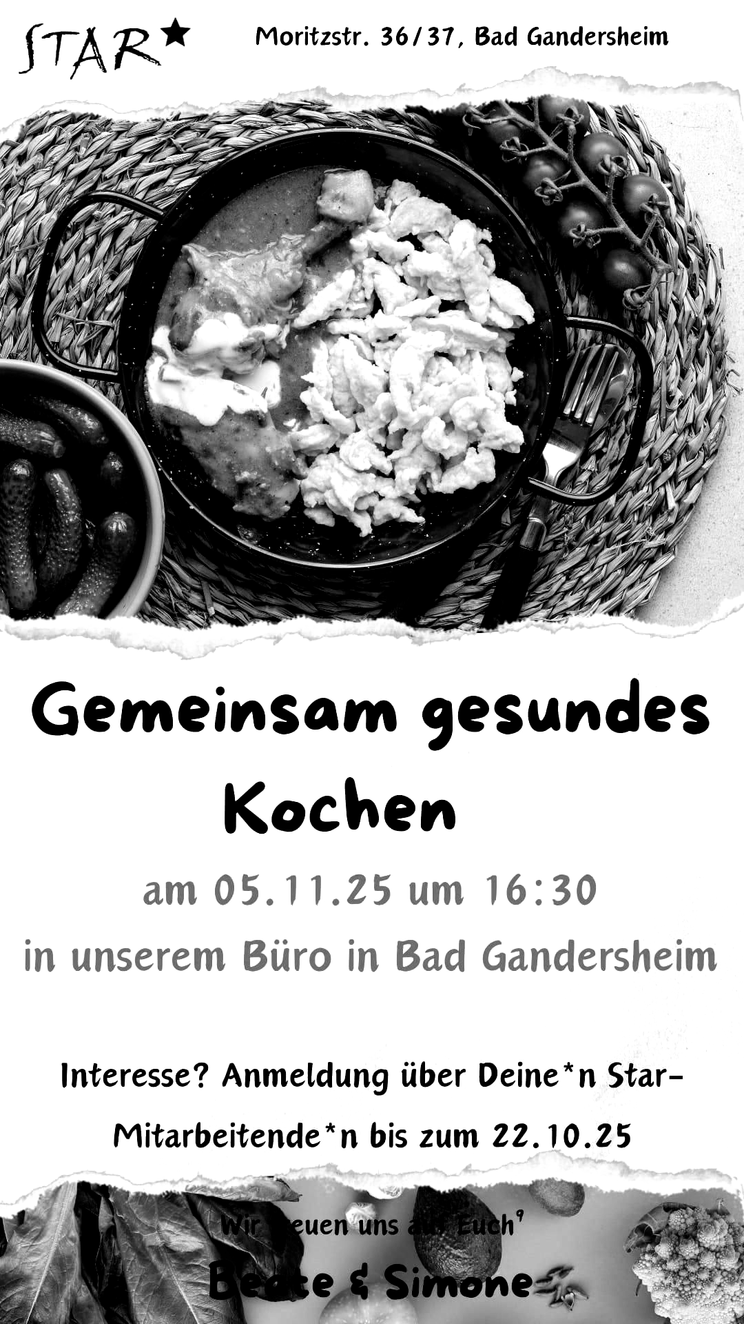 Gemeinsam kochen wir was - lecker UND gesund! Anmeldung über deine*n Star-Mitarbeitende*n bis zum 22.10.25