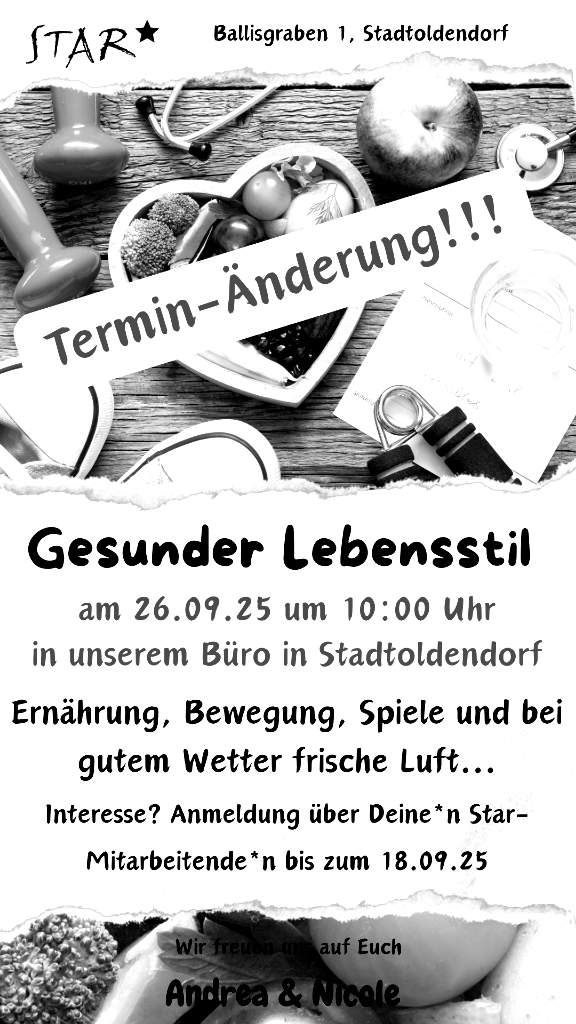 Ernährung, Bewegung, Spiele und bei gutem Wetter frische Luft. Anmeldung über deine*n Star-Mitarbeitende*n bis zum 18.09.25